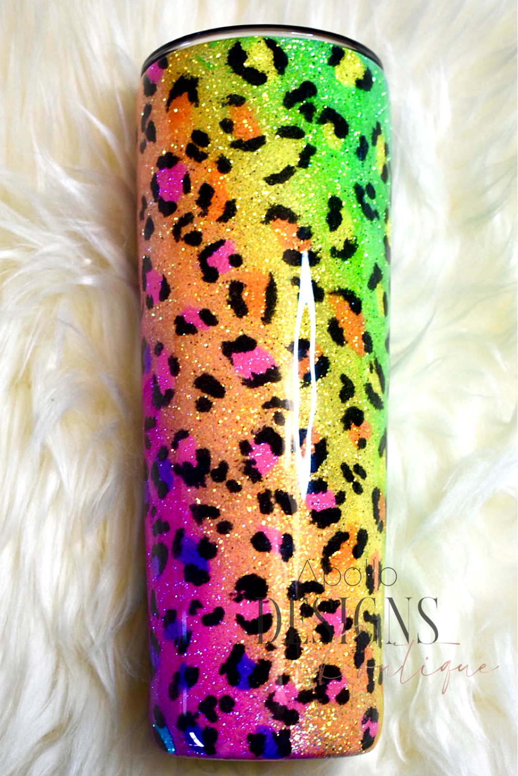 They say leopard is the new black but I say neon rainbow leopard is the new black! This brightly coloured, fun cup is perfect for the warmer months!